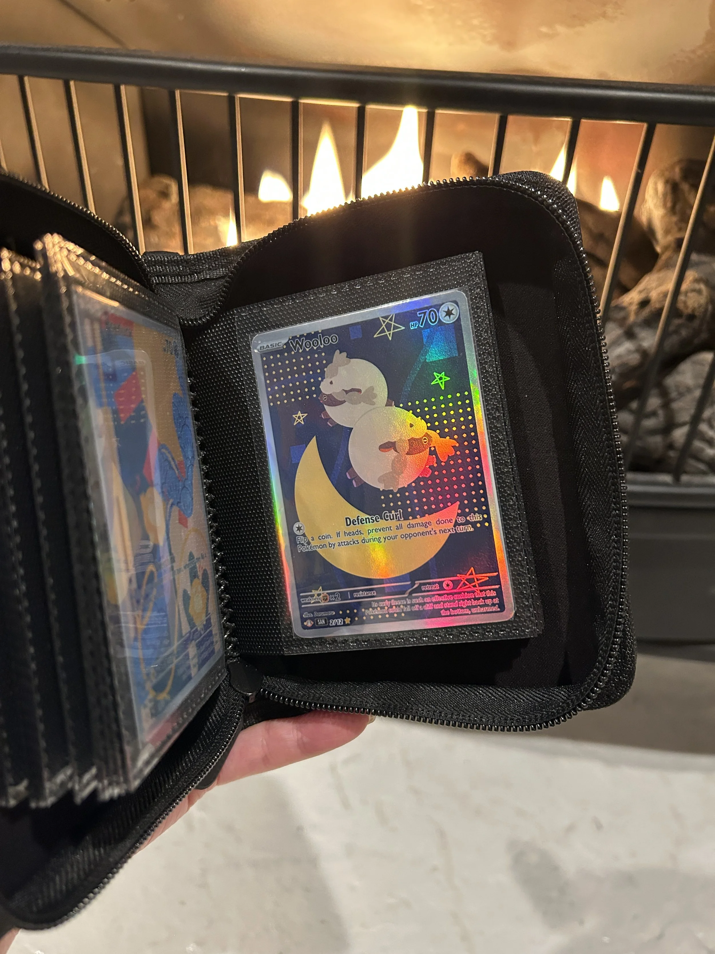 This binder is my solve! I really really just wanted a pocket sized binder that I could carry around in my purse or attach to my backpack! There were a couple of options I saw here and there but I wasn’t sure about how safe they were for my cards and I definitely wanted something that could safely store my Pokemon cards while also being super portable and handy!! This is definitely not the binder to hold whole sets but it is the binder to bring everywhere and show off some of your favorites of your collection in a really convenient and cute maybe even stylish way! Or even to do micro-collection, like the white binder can be your Alolan Vuplix or Snom binder, or you can collect by theme or artist!